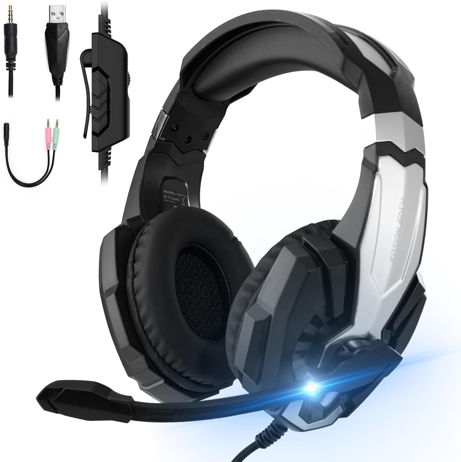 OMIRE Audifonos Gamer, Audifonos Diadema con Micronofono, 3.5mm Audio Jack, Audifonos Alambrico para Nintendo Switch, Xbox Series X, PS4, PS5, PC, Mac, RB-C8-W