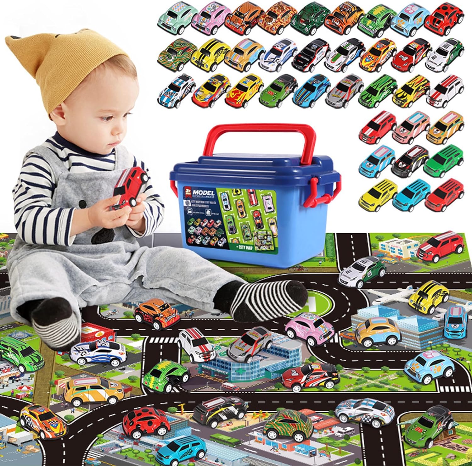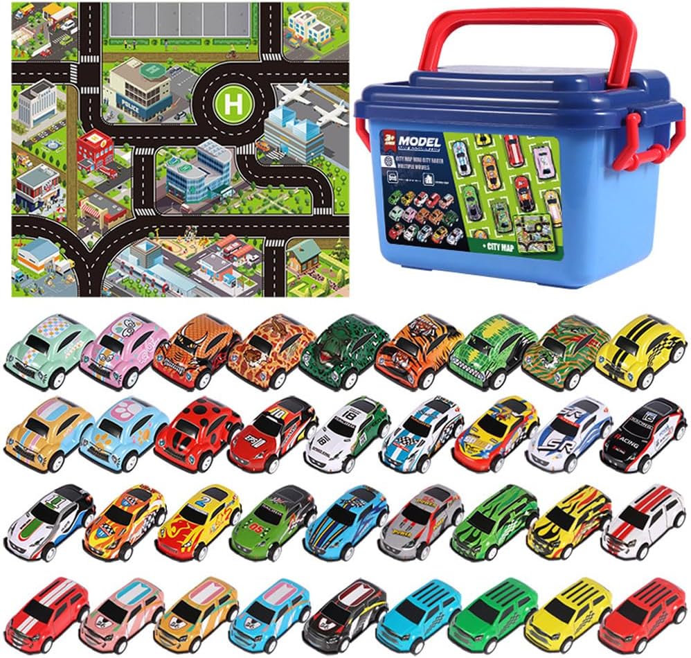 Mini coche de juguete de fricción,carritos para niños, coche de juguete con caja de almacenamiento y mapa, Adecuado para niños y niñas de 4 años en adelante,Es un gran regalo de cumpleaños o Navidad.