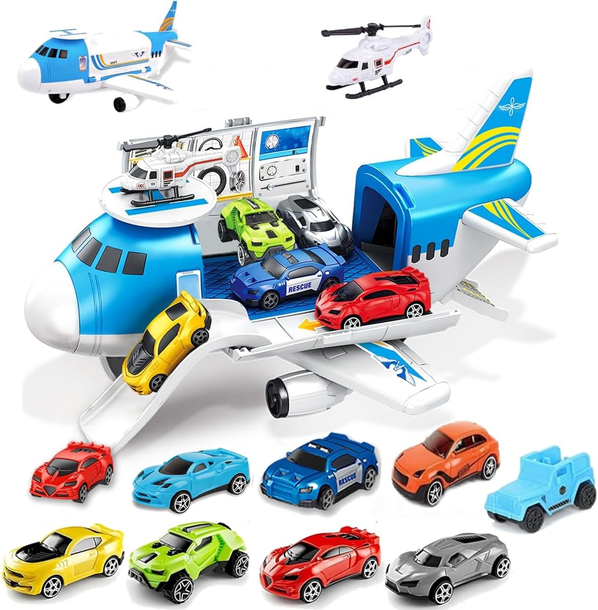Aviones de Juguete, 10en1 DIY Avión de Transporte de Carga con 8 Coches y 1 Helicóptero, Juego de Juguete Niños de Avión Coche Educativos, Regalo Navidad Cumpleaños Fiesta para Niños Niñas 3-7 años