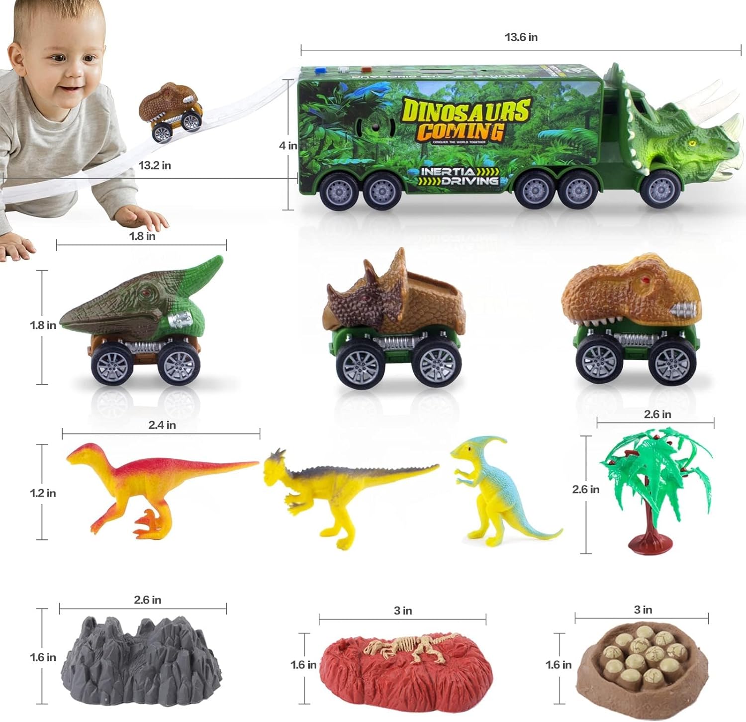 Charlemain Dinosaurios Juguetes, Camión Dinosaurios Juguetes, con Luces y Sonidos Camión de Transporte, Juego de Dinosaurios con Toboganes, Regalos Navidad Cumpleaños