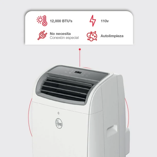 - Combo 1 Aire Acondicionado Portátil, WiFi, Enfriamiento, Calefacción, Ventilador y Deshumidificador, todo en uno, 12,000 BTUs, on off, conexión 110V + 1 Calentador de Agua Instantáneo Rheem Essentials 6 Litros por Minuto, Gas Natural, 1 servicio (1 regadera).