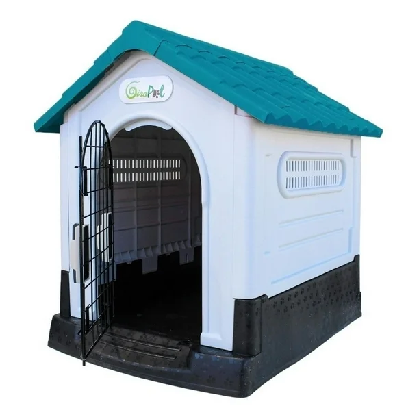 - Casa para perros de fácil armado y guardado ------------------------- I M P O R T A N T E Recuerde comparar las medidas del producto que se indican en las fotos con la medida de su mascota para que pueda tener la mejor experiencia. ------------------------- MARCA: GIROPET PESO : 5.8Kg MATERIAL: PP COLOR: Azul y Gris RANGO MASCOTA : Razas Pequeñas TAMAÃO MASCOTA: 25 - 35 CM PESO SOPORTADO: 0 - 20 KG Puerta de Acero incluida MEDIDAS PRODUCTOS: 63 x 50 x 66 CM MEDIDAS EMPAQUE: 67.5 x 22 x 51 CM PESO EMPAQUE: 6.7 Kg Ideal para razas pequeñas. Hecha de materiales resistentes y duraderos. La capacidad interior permite que su mascota juegue, se ponga de pie y duerma tranquila sin importar las condiciones externas. Es fácil de limpiar, además debido a la protección UV la casa no se decolora, por lo que es una excelente opción para uso en interiores y exteriores. Es plegable, para que se pueda guardar con facilidad y lo suficientemente liviana para moverla de lugar. Con protección UV Material resistente a la humedad Piso elevado del suelo para aislar y mantener seco al perro El diseño del techo evita que la lluvia moje el interior Se desarma totalmente para poder lavarla Producto totalmente nuevo y listo para su envío.