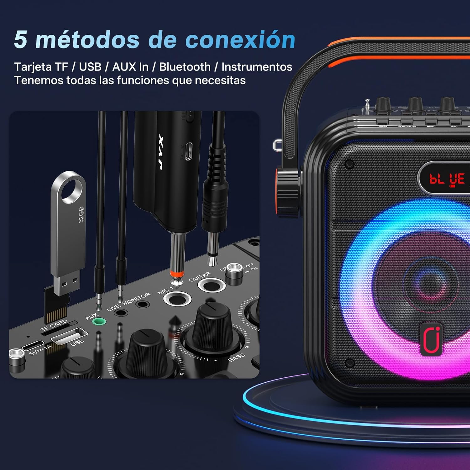 | Características especiales | Sistema PA con Luces RGB, Emparejamiento estéreo |