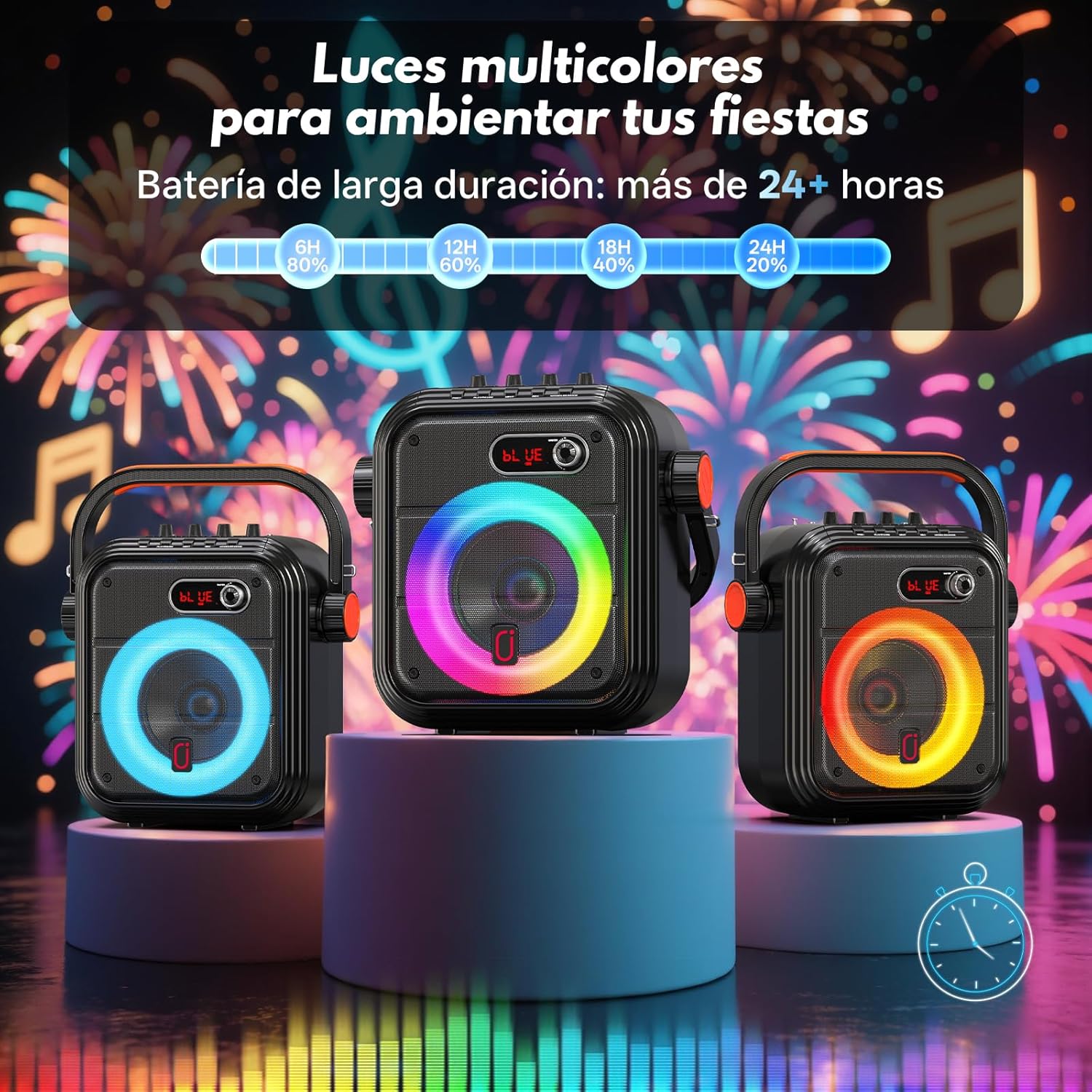 - 【Larga Duración de Batería】: Con su batería de 5200mAh, el 66Pro ofrece hasta 12 horas de entretenimiento sin interrupciones con una sola carga. Se recarga completamente en solo 6 horas y, con su subwoofer de 5.25 pulgadas y tweeter de 2 pulgadas, tendrás el control total de tu fiesta.