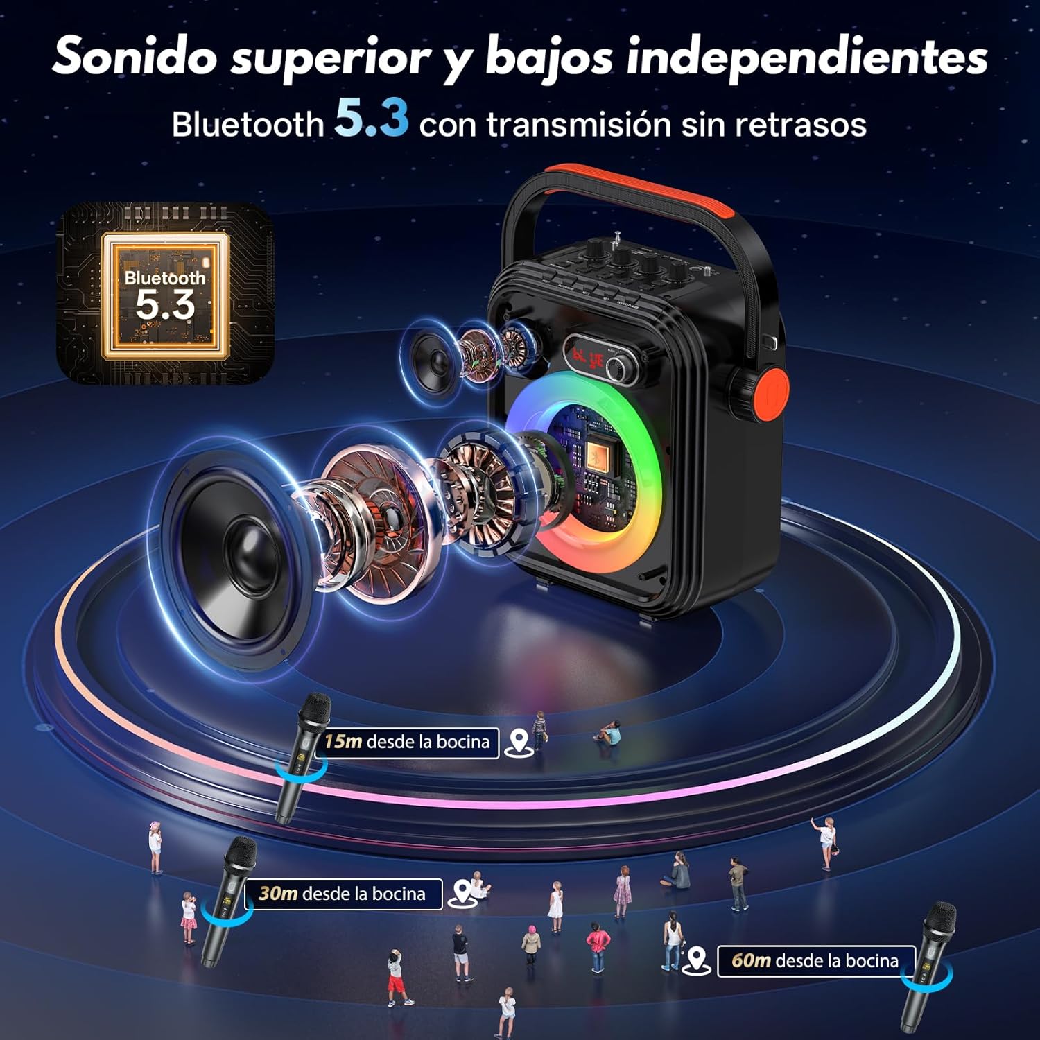 - 【Experiencia de Sonido Estéreo】: Experimenta un audio envolvente con la capacidad TWS (True Wireless Stereo) al conectar dos máquinas 66Pro en serie, logrando un sonido estéreo que te envuelve en un audio rico y multidimensional. Compatible con entradas de audio AUX, TF y USB para una mejor experiencia de uso. ¡Prepárate para una aventura auditiva que llevará tu experiencia a otro nivel!
