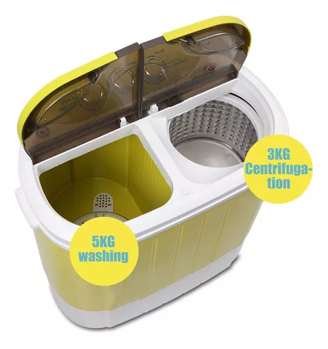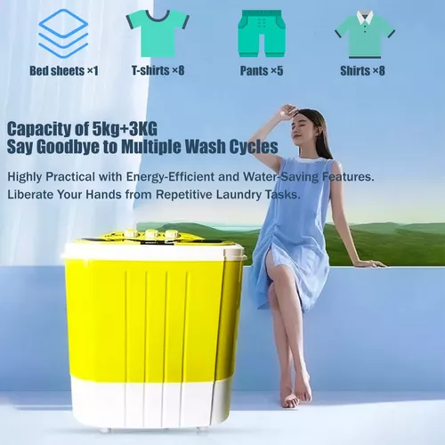 Esta lavadora de doble tambor tiene una capacidad de lavado de 5 kg y una capacidad de centrifugado de 3 kg. Ofrece un lavado más rápido y una eliminación de manchas eficaz. Su agitador tipo mariposa reduce el enredo y protege la ropa, garantizando un lavado más limpio y suave.